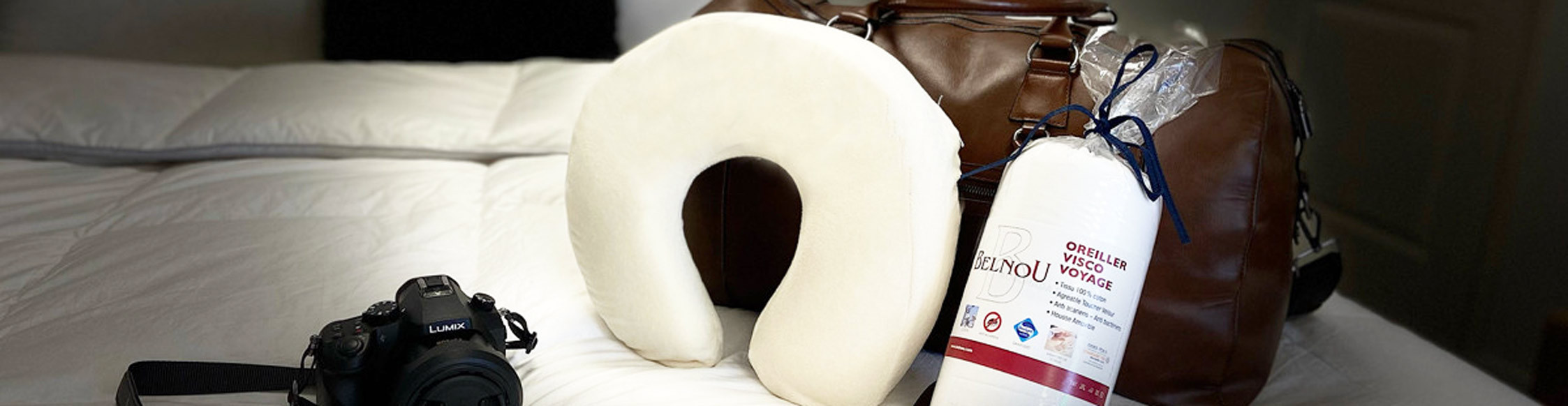 En voyage, votre nuque n'est pas suffisamment soutenue et vous ressentez des douleurs cervicales: nous vendons des oreillers de voyage et des cale nuque pour combler la cambrure du cou.