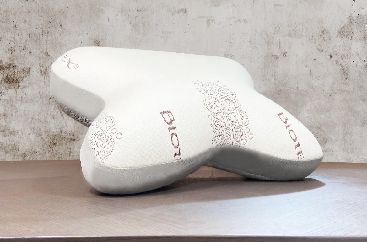 Oreiller Mémotrèfle Biotex pour dormir sur le côté.