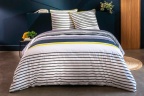 Effet chic pour cette parure de lit marinière relevée d'une bande jaune néon tendance