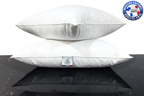 Achetez ce pack d'oreillers plumes anti acariens à prix promotionnel, économisez tout en choisissant la qualité Made in France.