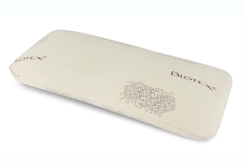 Le traversin à mémoire de forme Mémotradi Biotex est composé de mousse visco-végétale de densité 45kg/m3 garantie sans OGM.