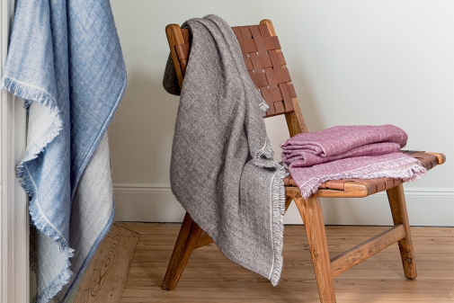 Grâce son excellente respirabilité, le coton est un allié de toutes les saisons. Fibre d'une grande noblesse, l'Alpaga est d'une douceur inégalée. Le mohair, laineux et douillet apporte un côté chaleureux et réconfortant. Enfin, le polyamide vient se mélanger et renforcer l'ensemble des fibres afin de créer un plaid ultra résistant.